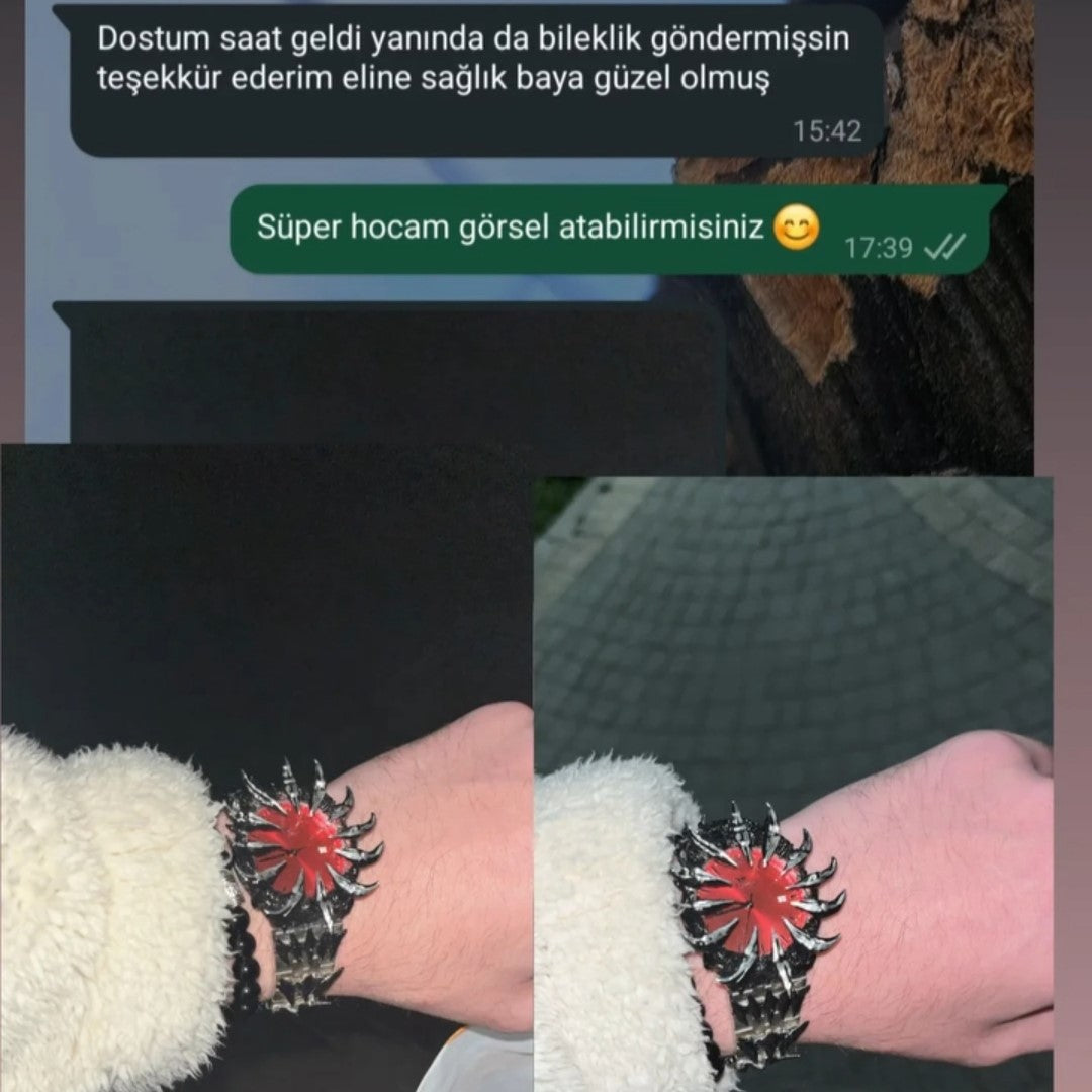 Derin kırmızının ateşi kontrollü bir şıklıkla akarken; akıcı silueti bakışı üzerinde toplar, parlak vurguları cesur ama rafine bir enerjiye dönüşür. El lehimiyle özel işçilikle yapılmıştır.